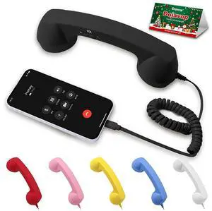 Retro Phone Handset Type C, 2026 Retro Cell Phone Receiver with Microphone & Speaker, Vintage Old School Telephone Handset with Crystal Clear Sound, 90s Classic Phone for Home & Office (Black)