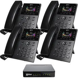 XBLUE QB1 System Bundle with 4 IP8g IP Phones Including Auto Attendant, Voicemail, Cell & Remote Phone Extensions & Call Recording