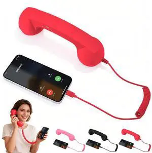 Retro Phone Handset,2026 New Retro Style Type-C Phone Handset,Type-C Retro Telephone Wired Handsets Style Landline Handle Receiver for Cell Mobile Video Conferences,Calls,Meetings (Red)