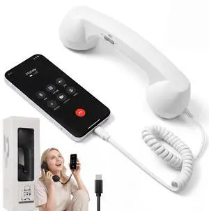 Type-C Wired Retro Phone Handset for iPhone, 2026 New Landline Handle Receiver with Volume Control, Exclusively Designed Retro Telephone for Clear Calls & Home Office (White)
