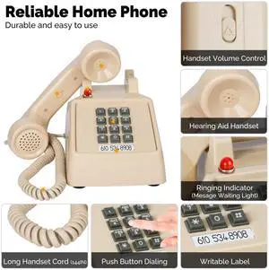 Sangyn Retro Wall Phones for Landline with Mechanical Ringer Corded Telephone Wall Mounted with Indicator Waterproof Old Style Landline Phones for Home Kitchen, Beige