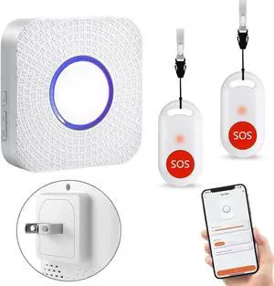WiFi Caregiver Pager Wireless Call Button Nurse Alert System for Home/Elderly/Patient/Disabled with Phone App Two Call Button One WiFi Receiver(only Supports 2.4GHz Wi-Fi)