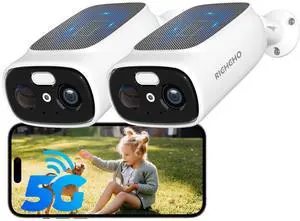 RICHCHO 2pcs 2.4G/5G WiFi Cameras for Home Security with Embedded Solar Panel,2.5K Solar Security Cameras Wireless Outdoor with Color Night Vision,2-Way Talk,Siren,IP66, Cloud/SD, AI Detection,W/Alexa