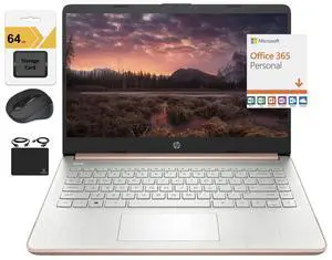 HP New 14" HD Ultra Light Thin Laptop, Quad-Core Intel Celeron Processor, 4GB RAM, 128GB (64GB eMMC+ 64GB Card), Wi-Fi, Upto 11 Hours, Windows 11 S + 1 Year Office 365+HubxcelAccessory, Rose Gold