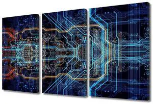 TUMOVO Digital Chip Wall Art CPU Concept House Decorations for Living Room Computer Chip Canvas Wall Art Paintings for Bedroom Office Decor 3 Pieces Modern Artwork Framed Ready to Hang(24" Wx36 H)