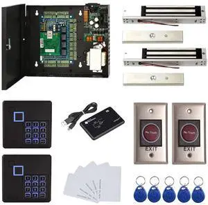 MENGQI-CONTROL 2 Door Access Control Board System 600lbs Electromagnetic Lock Infrared NoTouch Exit Button Keypad Reader 110~240V Power Supply Box USB Enroll Reader Card Key Fob APP remotely Open Door