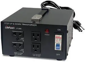 LiteFuze 2000 Watt Japan Voltage Converter Transformer Step Up/Down - 100v to 120v / 120v to 100v Japanese Power Converter - Fully Grounded Cord CE Certified