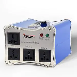 LiteFuze 2000W Voltage Converter Step-up/Down Auto Power Transformer - 110/120v to 220/240v - Heavy Duty Circuit Breaker Protection Converting Box Technology - Blue