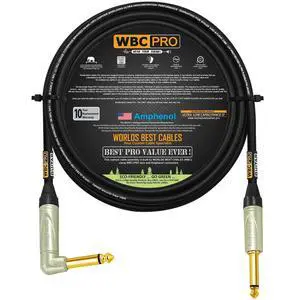 10 Foot - WBC-PRO-Guitar 20 AWG - Low-Cap (18pF/ft) Pro-Grade Graphite-Based - Dual-Shielded Guitar, Bass, Instrument Cable with Amphenol QM2R-AU & QM2P-AU Inch (6.35mm) Gold TS Connectors