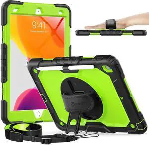 Timecity Case for iPad 9th/ 8th/ 7th Generation 10.2 inch - Heavy Duty Protective Cover with Screen Protector, Rotating Stand, Shoulder Strap & Pencil Holder ^^ Kids-Friendly (Green)