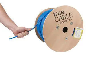 trueCABLE Cat5e Riser (CMR), 1000ft, Blue, 24AWG 4 Pair Solid Bare Copper, 350MHz, PoE++ (4PPoE), ETL Listed, Unshielded Twisted Pair (UTP), Bulk Ethernet Cable