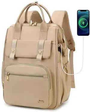 Tealari Laptop Backpack for Women,15.6 Inch Laptop Backpack for Work,Water Resistant Travel Backpack,College Bookbag with Wallet (Beige)