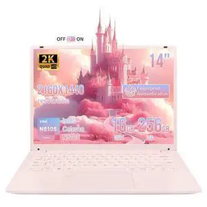 BINHENGLON 14.1 Inch Portable Laptop,Celeron N5105 Processor,16GB,(2160 x 1440) IPS,Fingerprint Unlock,Backlit keyboard, Push-pull camera,Win 11,Type-C,USB3.0*3,HDMI*1,WiFi /BT 5.0(Pink,16G+256GB SSD)