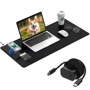 Mouse Pad 31.5x15.75 Inch with Calculator, 15W Magnetic Wireless Charging Desk Mat, XXL Desk Pad, Home Office Large Keyboard Pad with Ultra-Smooth Surface, Non-Slip Base (Black with 20W PD Charger)