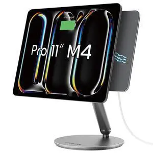 LULULOOK Magnetic Wireless Charging Stand for iPad Pro 11" M4 & M5, 360 Rotating Base with Anti-Slip Pad, Aluminium Alloy Foldable iPad Pro Stand Tablet Holder for Desk, USB C Cable Included