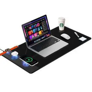 Mouse Pad with Magnetic Wireless Charging, Large Desk Mat, Non-Slip Mouse Mat, Keyboard Pad for Gaming, Desk, Office, PC (The Left Charging-Black)