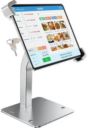 GDZN Anti-Theft Tablet Kiosk Stand with Lock, [Aluminum Arm] Desk Security POS Tablet Stand for Retail/Commercial/Trade Show, Heavy Duty Adjustable iPad Mount for iPad Pro, Galaxy tab, 9-14" Devices