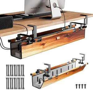 YOOMONA Cable Management Tray Under Desk , 38" No Drill Cable Organizer with Clamp/Screw Mount,Wire Cord Organizer for Table, Cable Tray for Office, Home