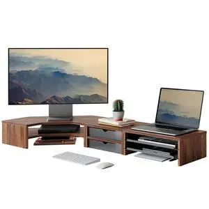 Aothia Large Dual Monitor Stand Riser, Solid Wood Desk Shelf with Eco Cork Legs for Laptop Computer/TV/PC/Printers, Perfect Desktop Stands Organizer with Underneath Storage for Office Accessories