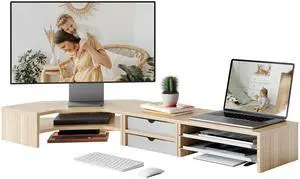 NestNeat Monitor Stand Riser, 24 Inch Computer Monitor Stand for Desk, 2-Tier Wood Desk Shelf Organizer with Storage, Desktop Stand for Laptop/Screen/PC/Printer, Ergonomic Home Office Monitor Stand