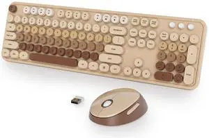 Fogruaden Wireless Keyboard and Mouse Combo, Retro Typewriter Full-Size Keyboard with Number Pad and Cute Mouse, Gradient Colorful Computer Keyboard for Windows PC Desktops Laptop