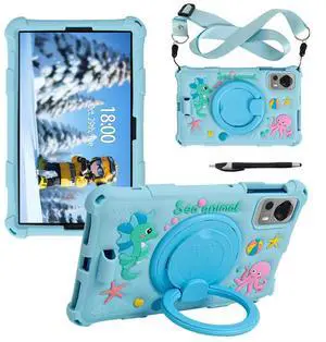 Tablet Case for ALLDOCUBE iPlay 50 Mini/60 Mini/DOOGEE T20 Mini/TCL/Samsung Galaxy Tab A 8.4 inch Soft Anti-Stress Silicone Case with Rotate Stand/Pencil Holder/Shoulder Strap/Pen (Sky Blue)