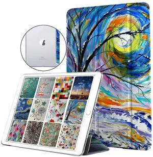 MEEgoodo Case for iPad 10.2 inch, Case for iPad 9th Generation 2021/ 8th Generation 2020/ 7th Gen 2019, Tablet Cover with Silk Texture & PC Back Cover, Art Painted Flowers