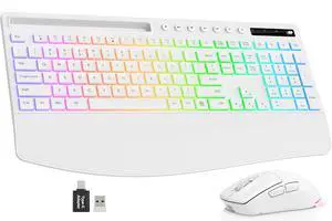 Trueque Wireless Keyboard and Mouse Combo, 4000mAh Rechargeable Backlit Keyboard with Wrist Rest & Phone Holder, Full Size Quiet Typing 2.4G USB-A/Type-C for PC Laptop Windows Mac (White)