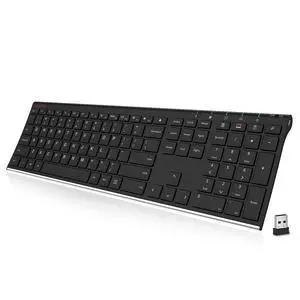ALLIFE 2.4G Wireless Keyboard Stainless Steel Ultra Slim Full Size Keyboard with Numeric Keypad for Computer/Desktop/PC/Laptop/Surface/Smart TV and Windows 10/8/ 7 Built in Rechargeable Battery