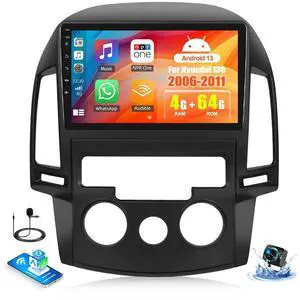 SIXWIN 4G+64G Android 13 Car Stereo for Hyundai I30 2006-2011 Manual A/C 9 Inch Touch Screen with CarPlay Android Auto Bluetooth Weather Forecast 59UI GPS Navigation WiFi Network Radio