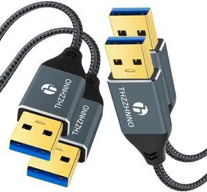 Thzzhnno USB Cable 10FT 2 Pack, 5Gbps USB 3.0 A to A Male Cord USB 3.0 Cable Compatible with Camera, DVD Player, TV, Flash Light, Hub, Monitor, Speake