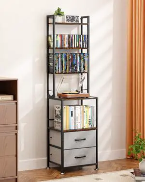 PAPAGIFTREE DVD Storage, Mutli 7-Tier DVD Storage Rack and Shelving, DVD Dispaly Shelf, CD Rack Tower for DVDs CDs Book Organizer with Drawers, Media Shelf, Manga Bookshelf for Gaming Media Moive Room