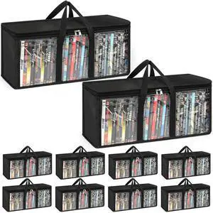 10 Pack DVD Storage Bags Clear PVC Media Organizer with Zipper and Handles Stackable DVD Storage Case for Albums Video Games Movie Cases VHS Box Blu Ray Storage Holds 350 Pcs DVDs