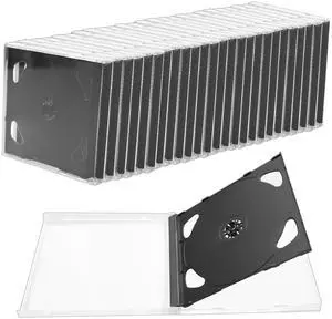 TANEMUDO 25 Pieces Plastic Double CD Jewel Case for Storage, 10.4 mm 2 Disc Capacity DVD Disc Case Clear Standard CD DVD Protection Cover (Black)