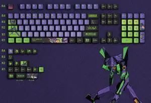 Anime character four-sided transparent pudding keycaps made of PBT and PC materials, with heat transfer printing technology EVA Model 1 has keycaps on all four sides