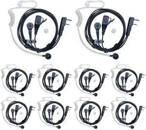 SHON Walkie Talkie Ear Pieces with Mic - 2PIN Acoustic Tube Earpiece for Crystal Clear Sound, Two-Way Radio Compatible with Kenwood Baofeng and Retevis,Police Law Enforcement (10 Sets/Black)