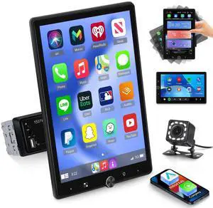 Single Din Vertical Car Stereo 10.4 inch Rotatable Touch Screen Radio - Wireless Carplay/Android Auto/EQ Audio/Bluetooth/GPS Navigation/FM Radio/SWC +Backup Camera