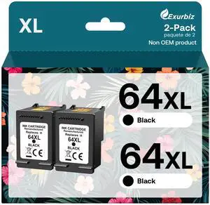 Exurbiz 64XL Ink Cartridges Black Compatible for HP 64 XL Work with Envy Photo 7855 7858 7155 6255 6252 7100 7800, HP Envy Inspire 7900e 7950e Tango Series Printer, 2 Pack