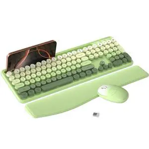 MPTOG Colorful Wireless Computer Keyboard and Mouse Combo with Phone Holder, Wrist Rest, Typewriter Keys, 2.4GHz Wireless, Full-Sized Optical Mouse for PC and Laptop(Green Colorful)