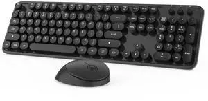 Wireless Keyboard and Mouse, KOOTOP Cute Black Keyboard and Mouse, 2.4G Wireless Keyboard with Retro Round Keycap for PC, Mac, Laptop,Tablet,Computer Windows (Black)