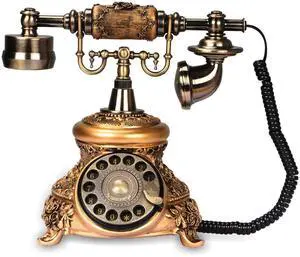 CERRXIAN Rotary Antique Telephone,Resin Imitation Copper Retro Landline Turntable Telephone Decoration Home Office Telephone(Copper Color-117AS)