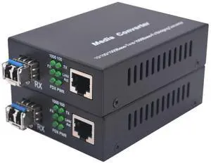 Single Mode LC Gigabit Fiber Media Converter - Include 2 SFP Transceiver 20Km (12.4 Miles), Wavelength 1310nm, LC to UTP Cat5e 10/100/1000 RJ-45 Gigabit Ethernet Speed, A Set