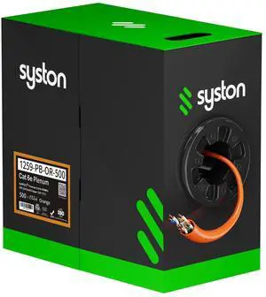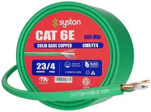Syston Cable Technology Cat6e Ethernet Internet Cable - 500 FT600MHz 23AWG Solid Bare Copper Wire Outdoor/Indoor Suit, No Ends 10 Ft to 1000 Ft Available, Heat Resistant Riser Rated - CMR