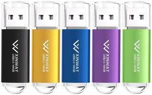 XINWAY 64GB USB 2.0 Flash Drives Thumb Drives Memory Stick Jump Drive Zip Drive, 5 Pack Mixed Colors: Black Blue Green Gold Purple
