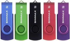SIMMAX USB Flash Drives 5 Pack 64GB Memory Stick Swivel Design USB 2.0 Flash Drive Thumb Drive Zip Drives (64GB Blue Green Black Red Purple)
