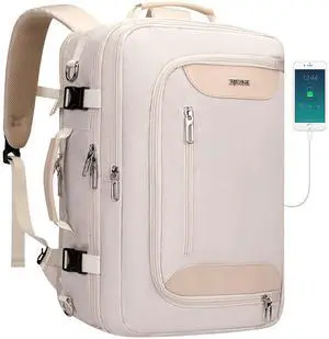 PIJUSHI Travel Backpack for Women Flight Approved Carry on Bag 16 inch Laptop Personal Item Daypack with Shoe Compartment(PE038 Beige)