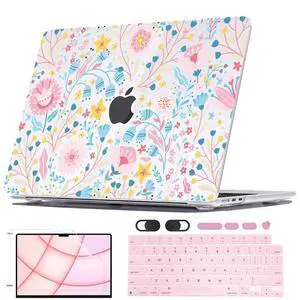 Seanai Compatible with MacBook Air 13.6 inch Case M5 A3449 M4 A3240 M3 A3113 M2 A2681 2026 2025 2024 2023 2022 Release Touch ID, Printed Pattern Plastic Hard Shell Case Keyboard Cover, Pink Flowers