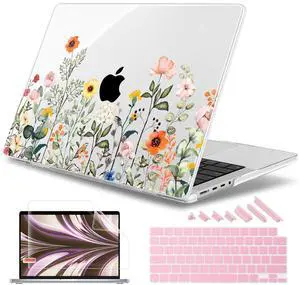 Seorsok Compatible with MacBook Air 13 Inch Case 2022 2021 2020-2018 Release A1932 A2179 M1 A2337 Touch ID,Elegant Sage Flower Plastic Hard Case&Transparent Keyboard Cover,Crystal Clear