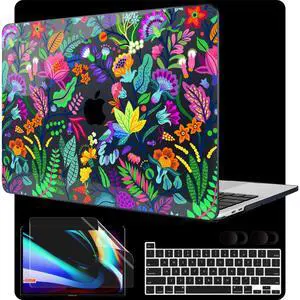 MEEgoodo Case for MacBook Pro 13 inch Case 2022 2021 2020 A2338 M2/M1 A2251 A2289,Laptop Hard Shell with Keyboard & Camera Cover Compatible with 13 inch MacBook Pro,Bright Flowers & Tropic Leaves