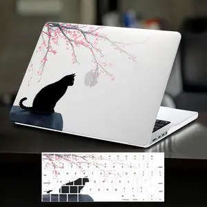 DTangLsm for MacBook Air 13 inch Case 2025 2024-2022 M4 M3 M2 A3240 A3113 A2681, Cute Plastic Hard Shell Cover for MacBook Air 13.6 inch Case Cat Mac Book Air M4 Cover+Keyboard Skin, Black Cat Flowers